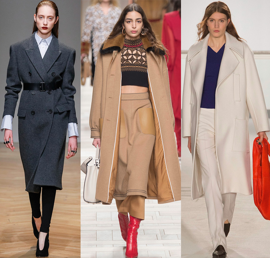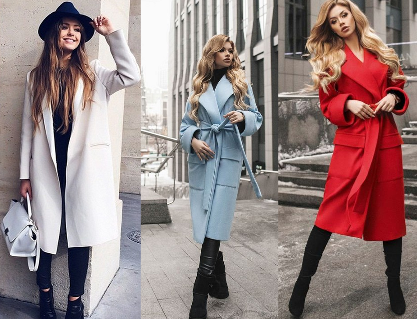 Наиболее популярными цветами пальто в этом сезоне являются серый, черный, красный и белый.
