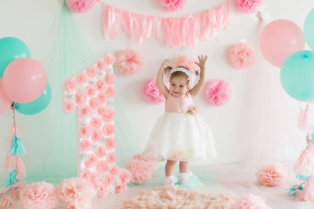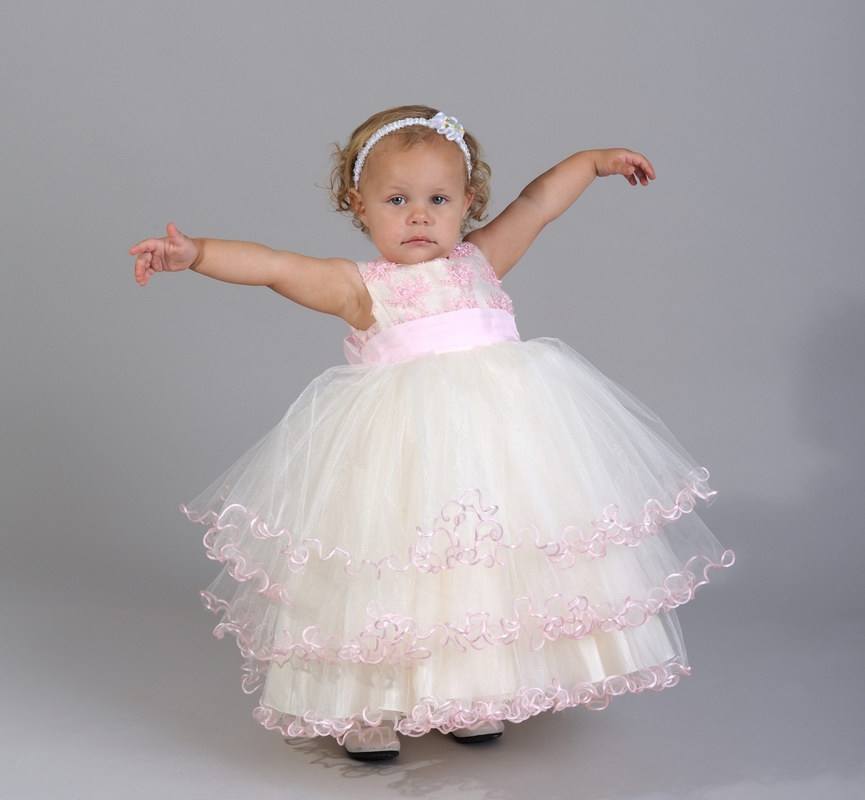 Нарядное платье останется на фотографиях. Все родители организуют фотосессию в первый день рождения девочки. Малышка должна выглядеть настоящей принцессой. Не выходят из моды платья с воздушной юбкой-пачкой. Классический вариант, когда низ пошит из фатина, а лиф скроен из другой ткани. Для подвижных именинниц платья в пол не подходят. Для них выбирают укороченные платьица из красивого материала.