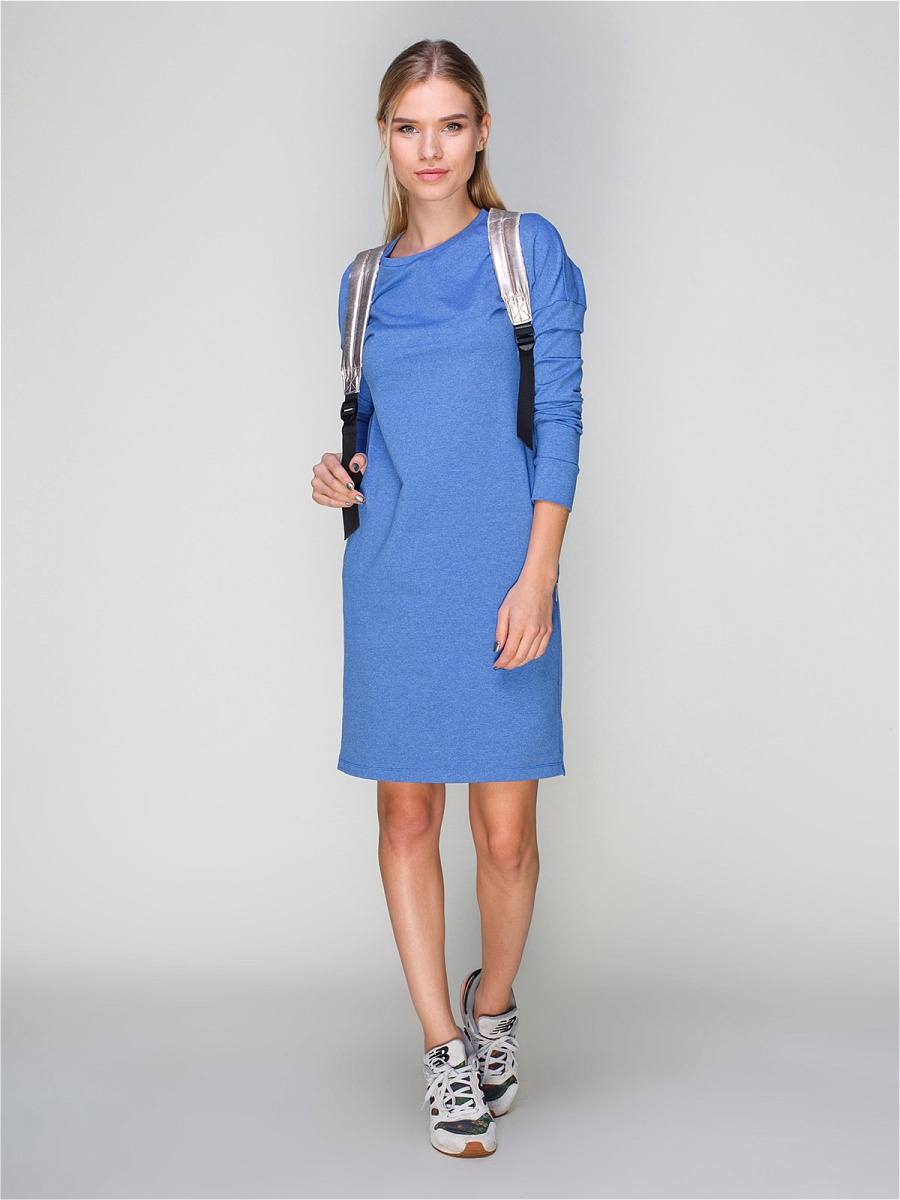 В создании аккуратного и более строго образа помогут коричневые, белые, синие оттенки. В прохладную погоду дополняйте платья голубого цвета пиджаками, кардиганами, жакетами сиреневого и фиолетового цвета.
