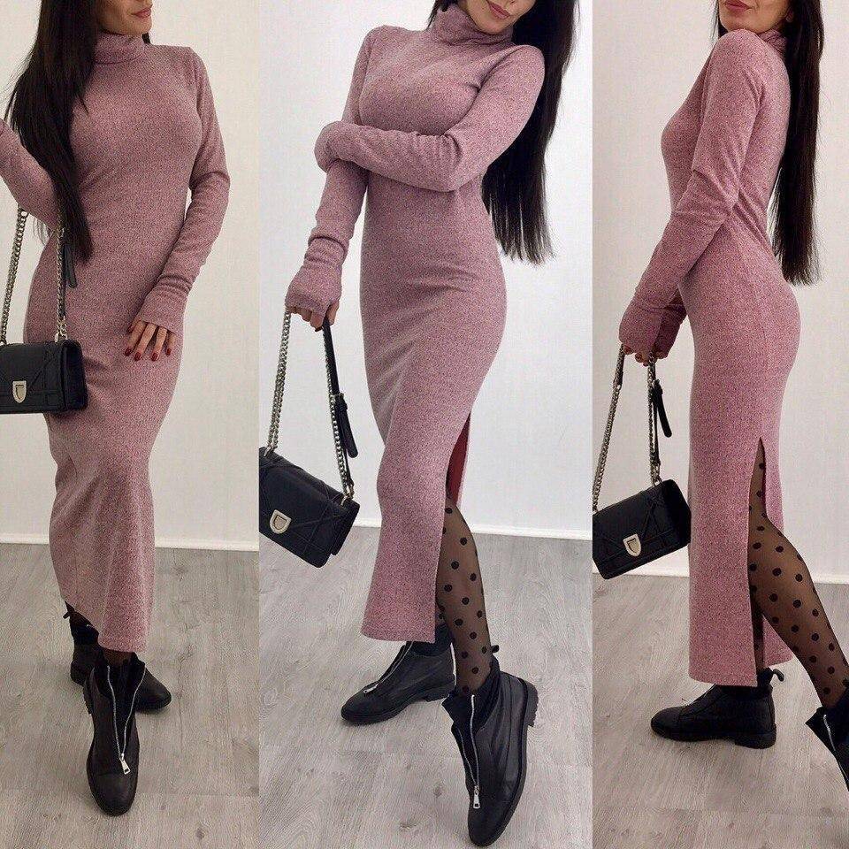 Вязаное платье с длинным рукавом, а также одним или двумя распорками — отличная возможность выглядеть женственно и обольстительно в холодное время года. На таких моделях разрезы в основном являются небольшими.