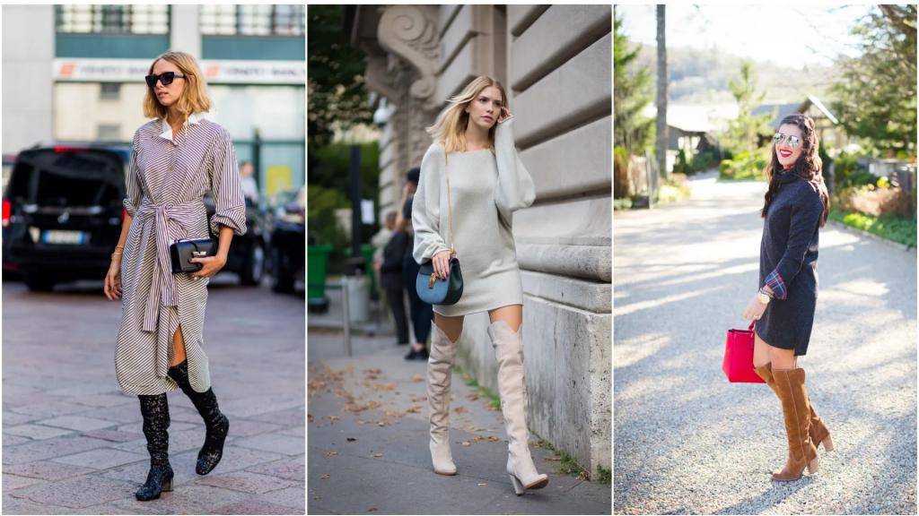 Смело используйте данную фото-шпаргалку, когда будете размышлять над тем, с какими сапогами носить платье осенью и зимой. Это базовое сочетание для холодного сезона, которое может стать основой для множества удачных образов. Следуйте простым советам и составляйте собственные стильные аутфиты!