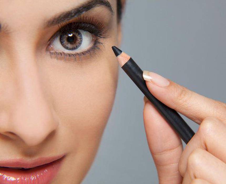 - воспользовавшись карандашом, прокрасьте верхнее веко в области межресничного пространства;