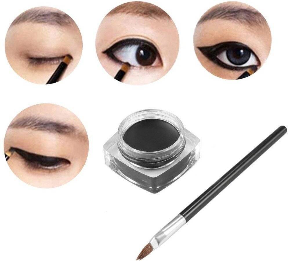 - гелевая подводка часто используется профессиональными визажистами. Для её нанесения требуется маленькая скошенная кисть, которую некоторые производители прилагают к средству в комплекте.