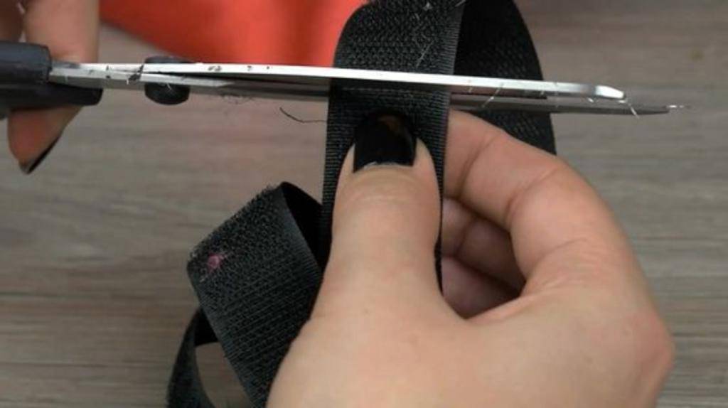 Отрежьте липучку так, чтобы она была такой же длины, как и часть ленты. Не нужно проводить замеры ленты. Просто соедините один конец липучки с концом ленты для волос. Соедините их с помощью клея, подождите около двух-трех минут и обрежьте излишки.