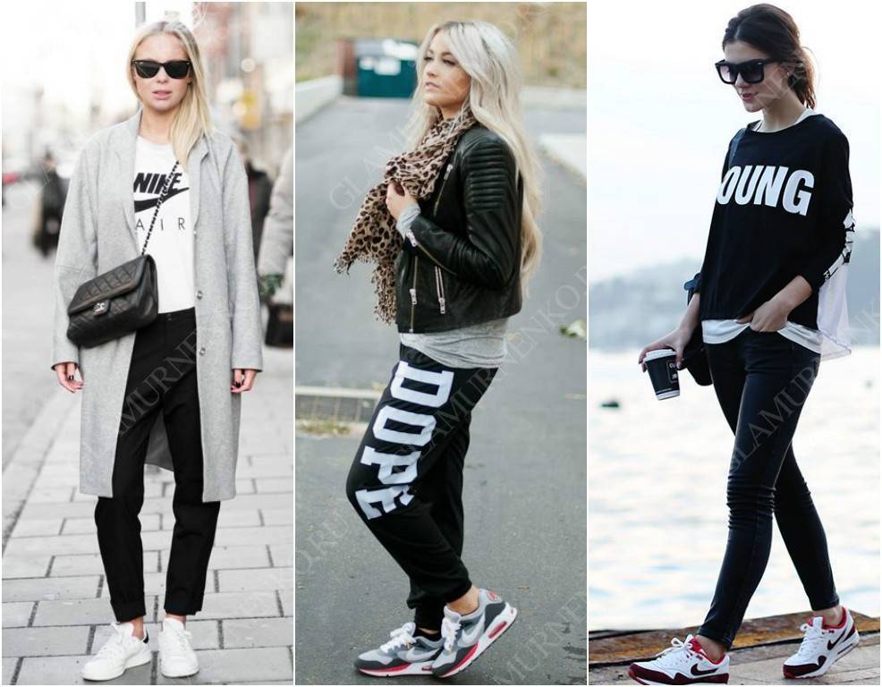 В дополнение к этим образам куртки джинсовые, кожаные с капюшонами, спортивные кроссовки, кеды. Но стоит заметить, что элементы спортивного стиля вполне сочетаются сегодня с классикой и модерном.
