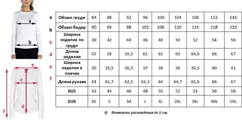 При этом следует учитывать, что в Европе очень сложно найти большие женские модели, поэтому женщины с формами предпочитают выбирать отечественные или американские изделия. Основные размеры женских футболок указаны в таблице.