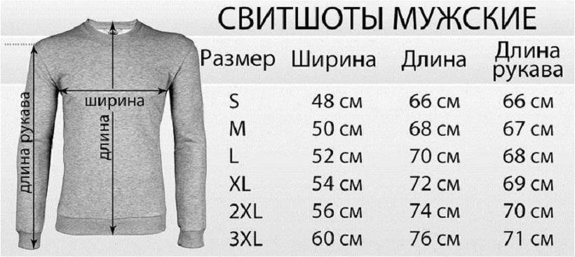 Размеры мужских футболок, национальных и международных, указаны в таблице.