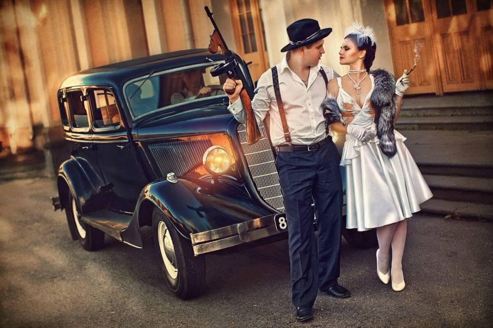 Костюм жениха должен повторять концепцию свадьбы ретро и сочетаться с нарядом невесты. Для создания образа в стиле Гэтсби мужчине потребуется костюм-тройка и шляпа с узкими полями. Главным аксессуаром станет бабочка и подтяжки. Для свадьбы в стиле 50-х годов жениху подойдет классический черный костюм с белой рубашкой. Образ в стиле 70-х годов поможет создать льняной костюм светлого оттенка.