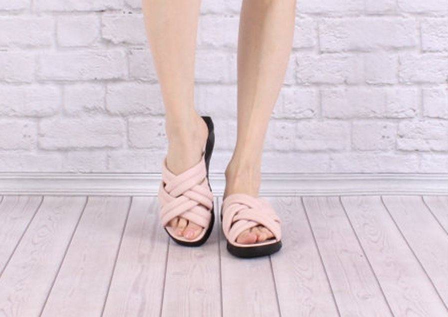 Обычно они оснащены плоской подошвой, а также широкой опоясывающей верхней частью. Оснащается кожаными, резиновыми, текстильными или пластиковыми ремешками. Для пляжа подойдет вариант с тканевыми вставками, а также бамбуковой подошвой, ну и конечно пластиковые и резиновые вариации. Сейчас в моде пантолеты на танкетке с плетеным эффектом, а также варианты на плоской подошве со вставками из ротанга или бамбука.