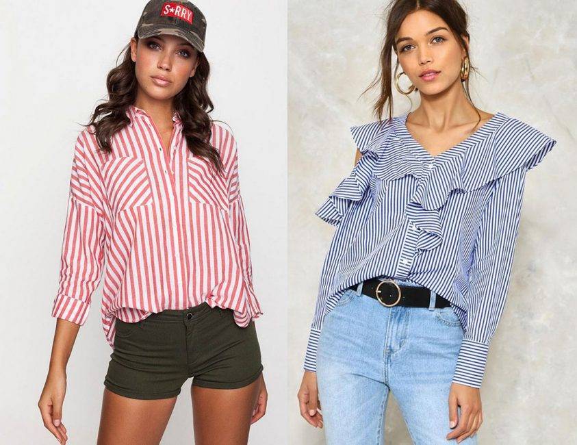 Другие варианты сочетания полосатой женской рубашки