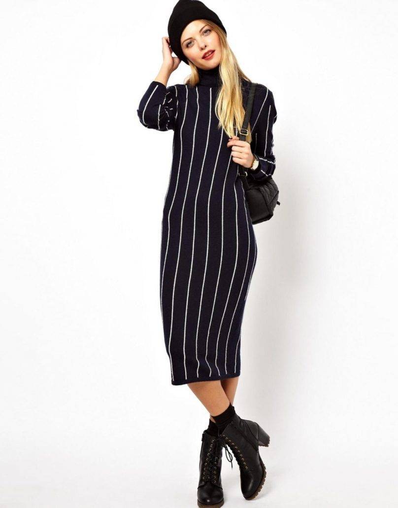 С чем носить платье-водолазку осенью: высокие сапоги и пальто