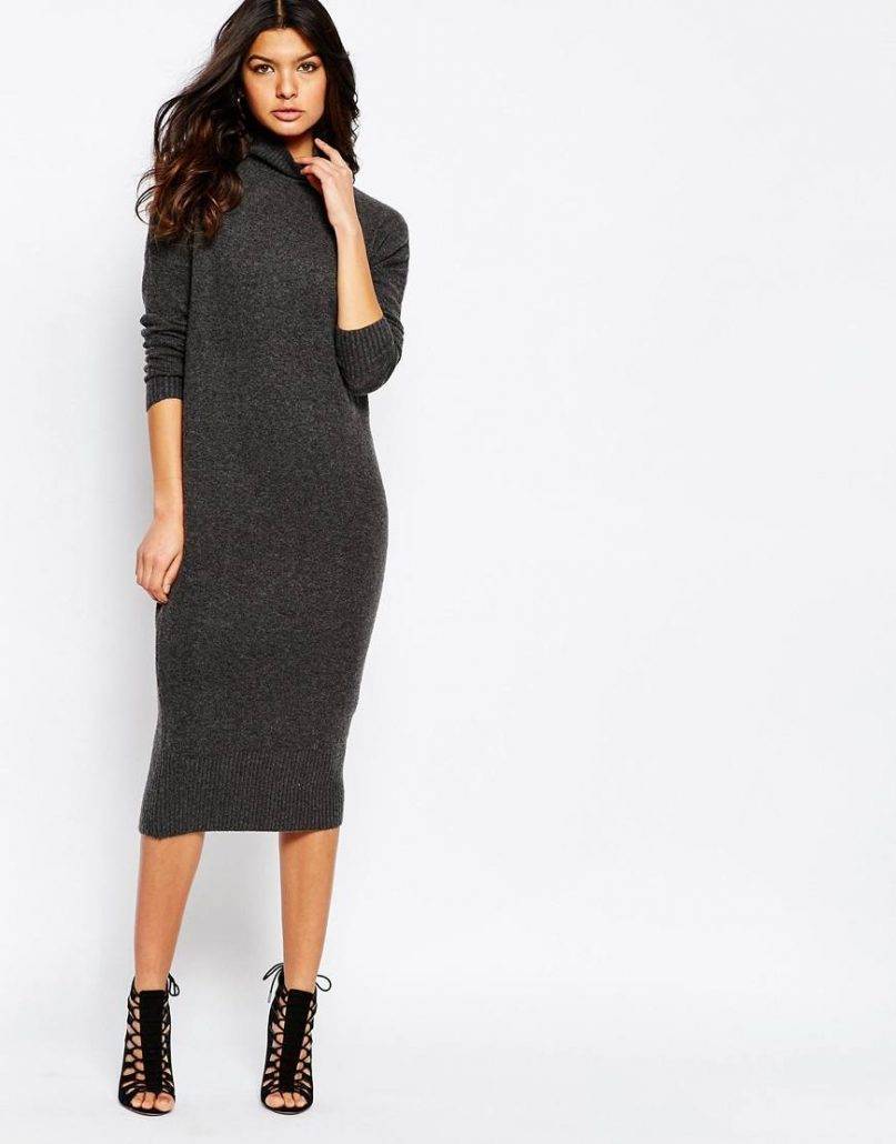 Вообще, можно сказать, что платье-водолазка — это основа вашего образа. Куда бы вы ни собрались: на работу, на прогулку, вечеринку, уютное кафе, в путешествие всегда можно выстроить интересный и соответствующий обстановке look. Обычно для таких целей выбирают платья серых оттенков, бежевого, пудрово-розового, белого. С такими цветами проще выбирать аксессуары и обувь, делать яркие акценты.