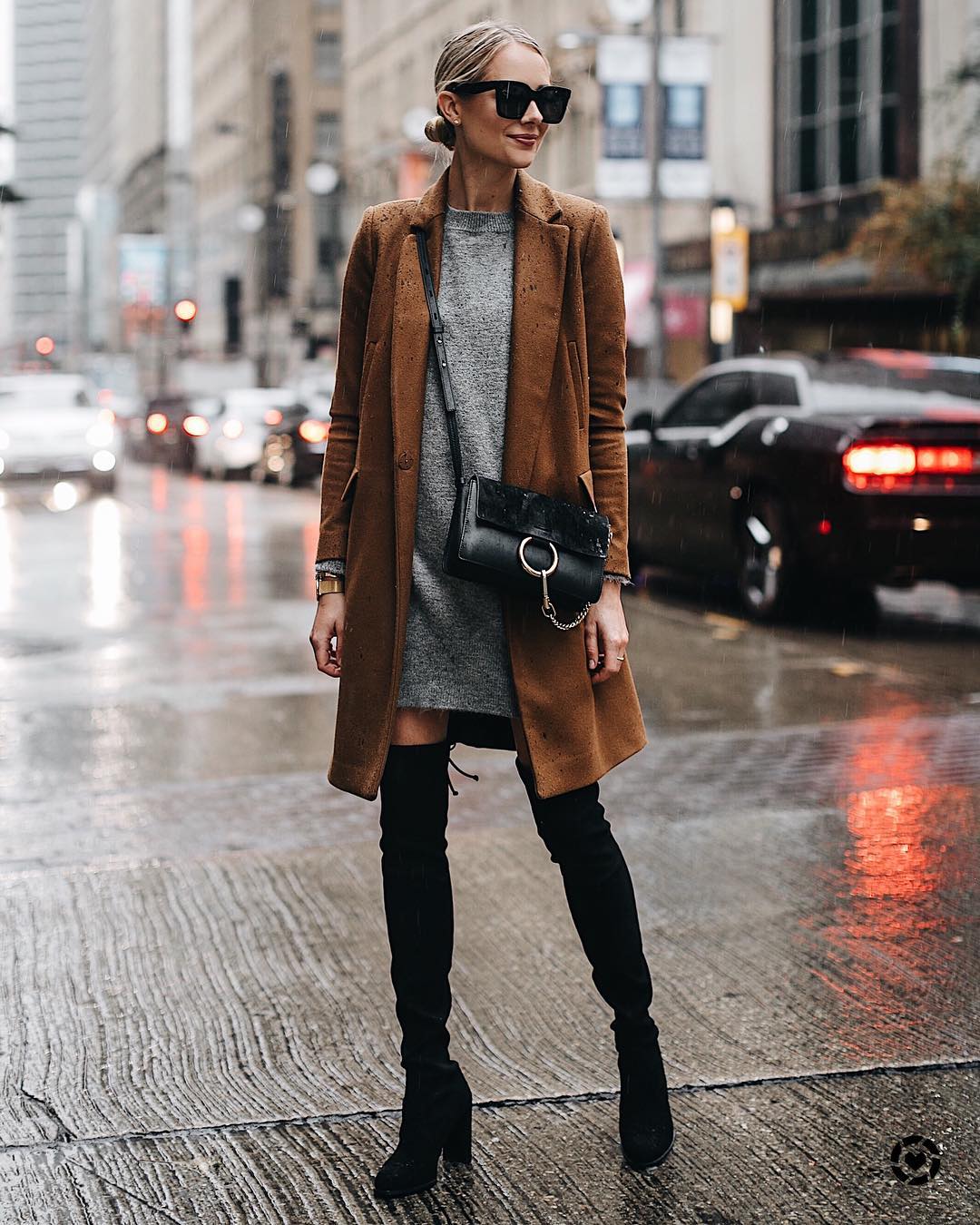 Многослойность в одежде – лучшее, что можно использовать для создания стильных луков с ботфортами. Достичь нужного эффекта просто – достаточно носить шубку или пальто распахнутым.