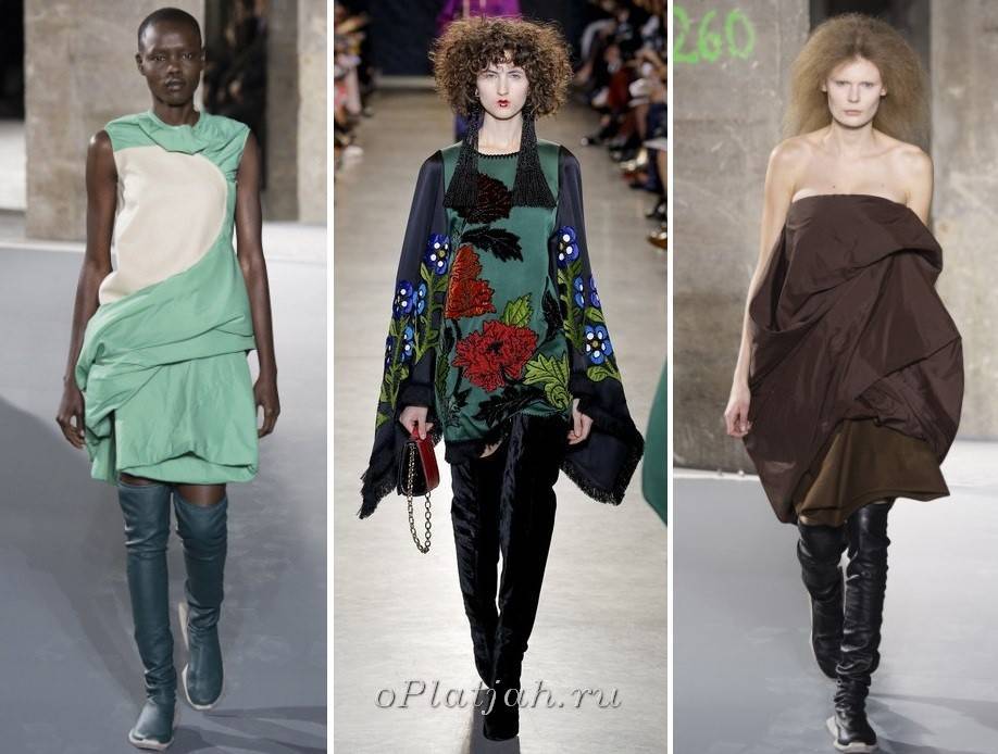 Интересно смотрятся платья, юбки и свитера с асимметричным низом. Но подходят они только под ботфорты без каблука, в крайнем случае – на устойчивом каблуке, но ни в коем случае не на шпильке.