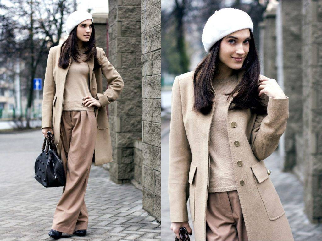 Длинное пальто не будет хорошо смотреться с широкополой шляпой, а вот с беретом выглядит очень даже неплохо.