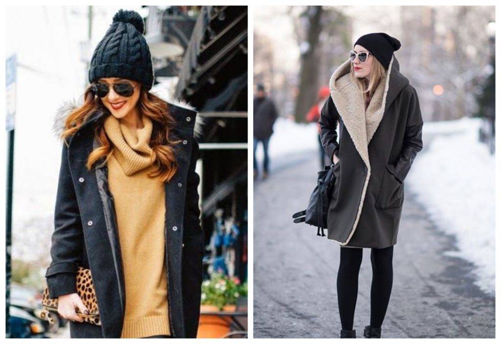 Верхняя одежда с капюшоном может и вовсе избавить от необходимости носить шапку. Но если этот аксессуар все-таки нужен, лучше подобрать однотонную минималистичную модель без крупной вязки.
