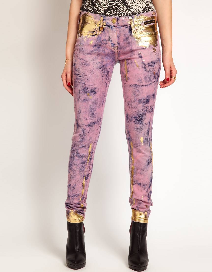 Классический деним рекомендуется сочетать с брюками ярких оттенков, например: «фиолетово-свекольный», «малиновой розы». К голубым оттенкам синего добавьте джинсы светло-розовых тонов — «розовая раковина», «тропический персик».