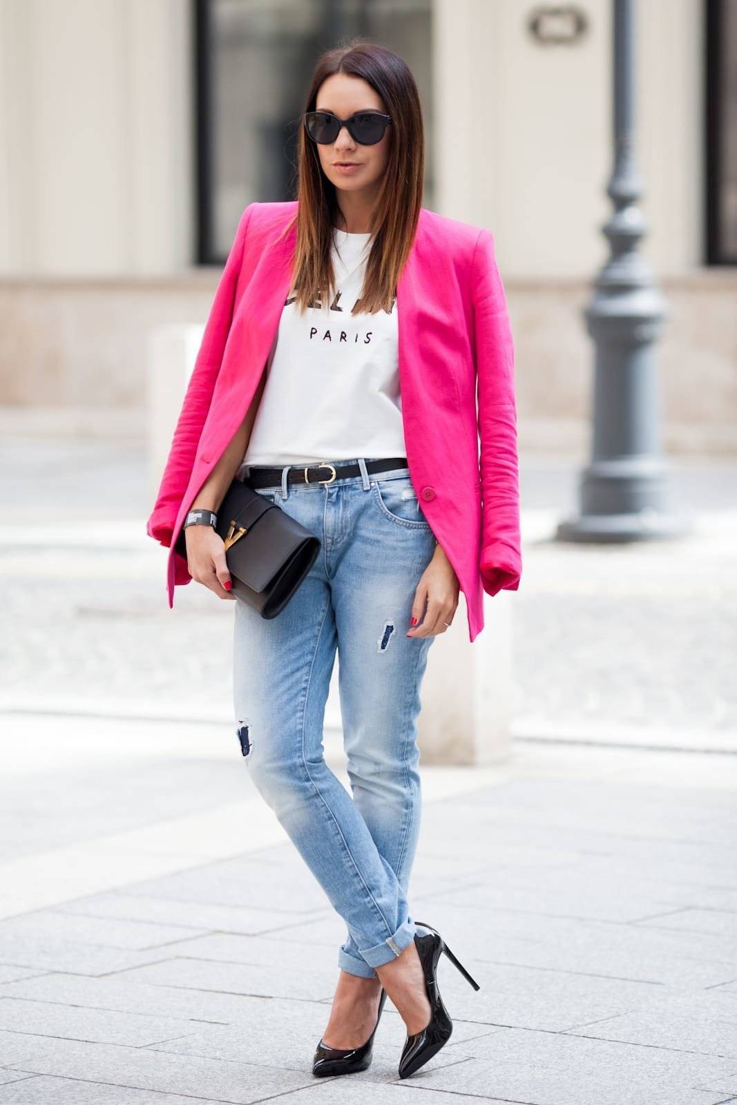 Розовый пиджак бывает разным: светлым или темным, ярким или бледным. Каждый оттенок нужно уметь сочетать с другими вещами
