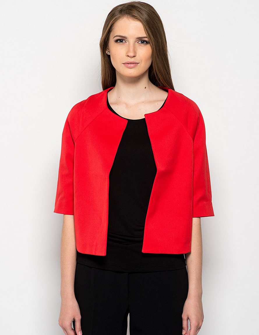 - Короткий. Такое изделие никогда не выходит из моды. Отлично смотрится этот вариант в комплекте с моделями с завышенной талией, платьями. Для пошива используются как легкие, так и более плотные ткани. Оригинально выглядят пиджаки с укороченным рукавом.