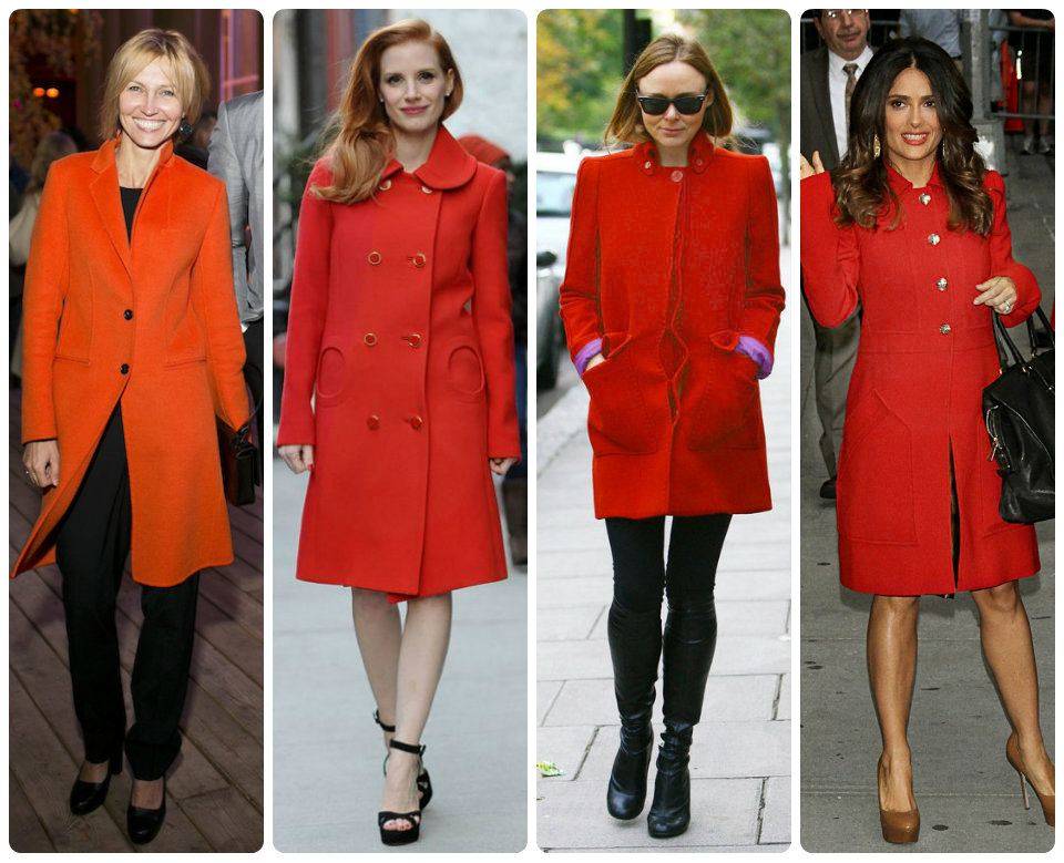 Рыжее пальто отлично сочетается с бледной кожей представительниц весеннего цветотипа, а также помогает отвести внимание от мелких косметических недостатков, присущих порой «весне» (как, например, синяки под глазами или просвечивающие вены)