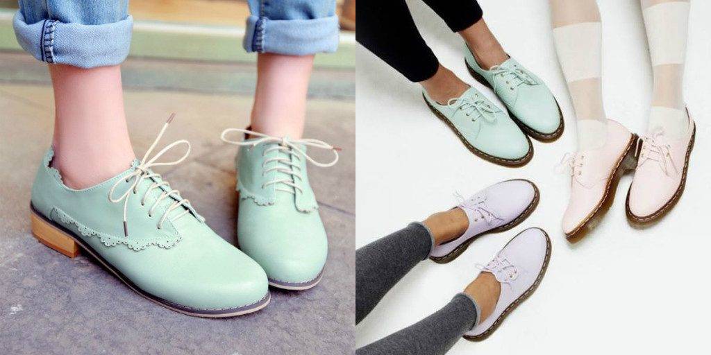 Также варианты со шнуровкой прекрасно смотрятся в образах кэжуал, в данном случае можно подобрать как классические оттенки обуви (черный, зеленый, коричневый), так и экспериментировать с более яркими вариантами, например розовыми.