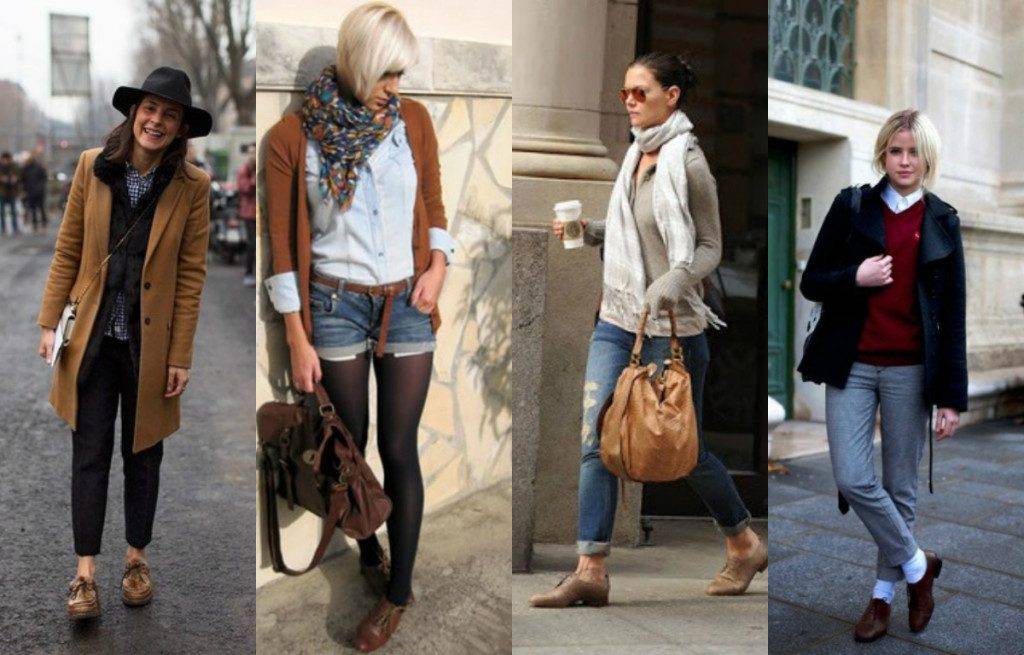 Ботинки оксфорды подразумевают строгость и утончённость каждой детали туалета. Оксфорды — статусная модель. Весь образ должен подчёркивать статус. Эти ботинки молодёжные, но сдержанные. К оксфордам идеально подойдут зауженные классические джинсы чистых цветов, а также дудочки.