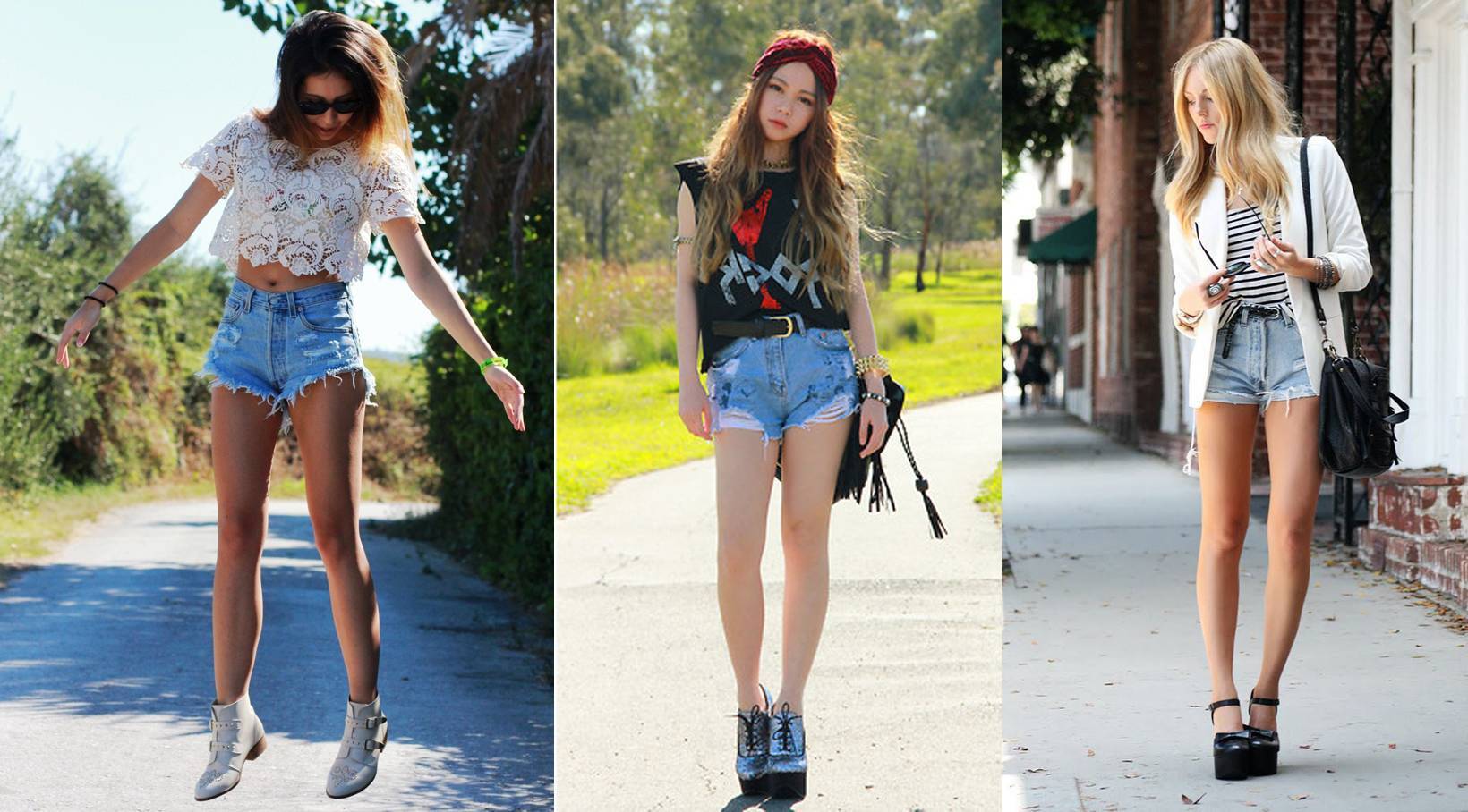 В своих материалах мы стараемся указывать на самые универсальные и несложные в исполнении варианты. Безусловно, вы можете сочетать джинсовые шорты с различными по цвету топами и футболками, но беспроигрышный образ — это белый верх и небесная голубизна джинсовых шорт. Если образ вам покажется скучным, то накиньте на топ джинсовую рубашку (она может быть на тон светлее или темнее, чем шорты) или клетчатую, ее же можно повязать на пояс. Обувь может быть различной. Если вы наденете сланцы, то пляжный лук в вашем распоряжение. В грубых ботинках, снепбэке и рубашке на поясе — станете иконой street-style. Не исключаем и женственные босоножки на танкетке и балетки