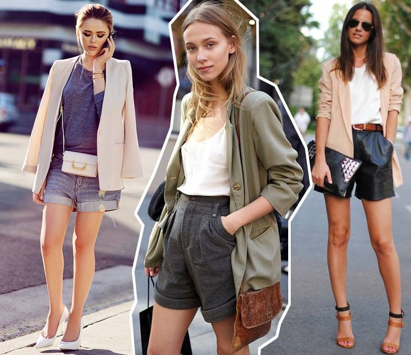 Сочетание шорт допустимо с разными вещами в зависимости от ткани, из которых они изготовлены.