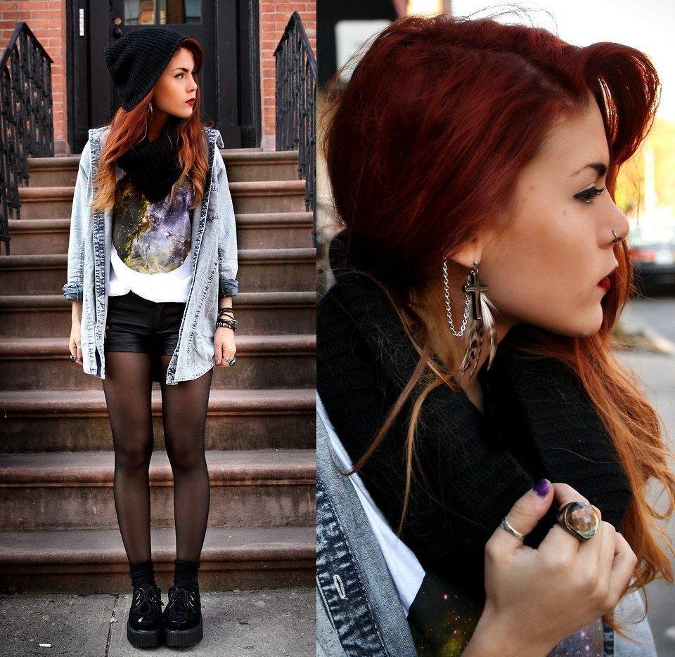 Стиль гранж характеризуется легкой небрежностью. Рваные шортики, футболка с ярким принтом, кроссовки подойдут молодым бунтарским натурам.