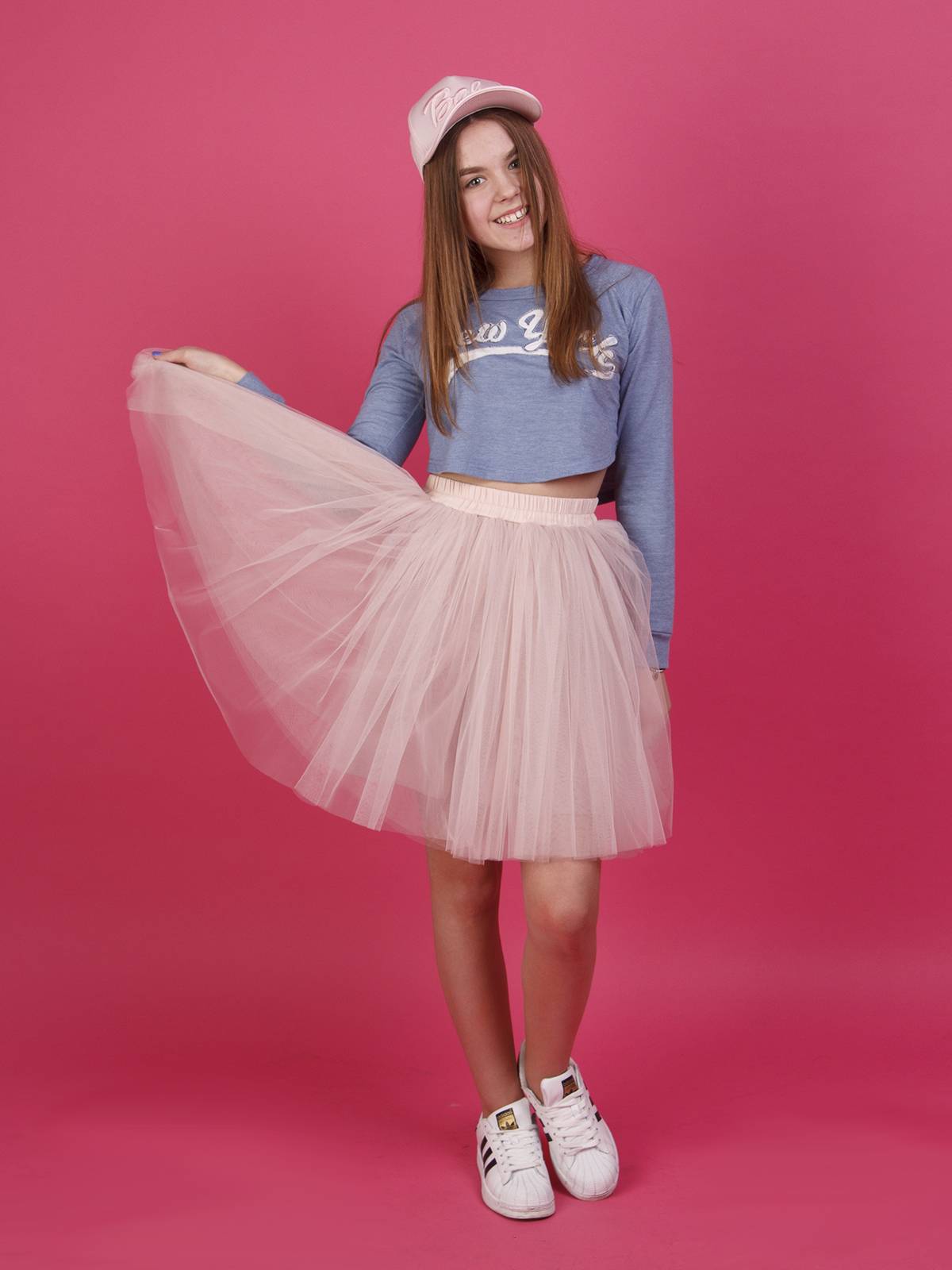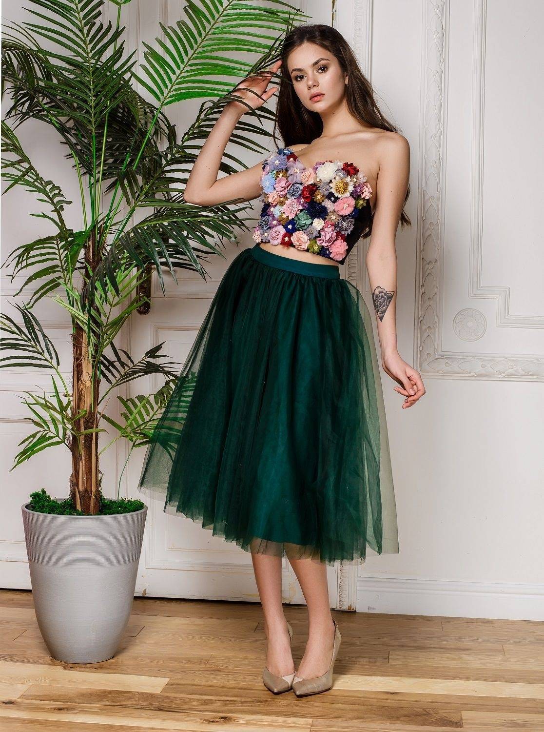 В жаркое время года создавать стильные образы с юбкой из фатина проще всего. Самым интересным вариантом для модного лука является кроп-топ. Он подходит как молодым девочкам, так к женщинам старшего возраста, имеющим хорошую фигуру.