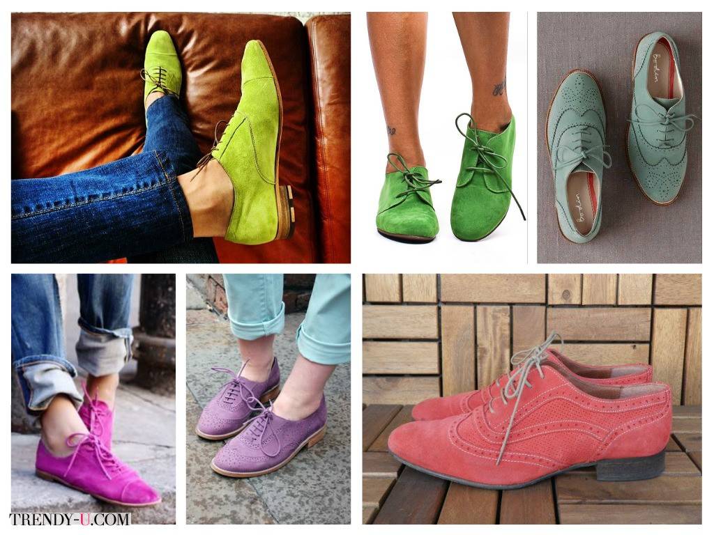 Получилось хорошо. И понеслось. Женские туфли оксфорд выпускают в немыслимом разнообразии цветовых сочетаний, так что можно подобрать идеальную пару к любому наряду.