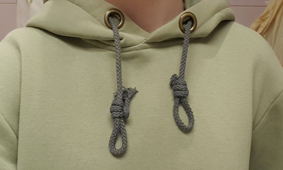 Сделать свитшот максимально стильным удастся за счет формирования красивых и необычных узлов на шнуровке. Это полезно не только в целях декоративного оформления. Узлы на толстовке помогут избежать случайного «ускользывания» внутрь этого предмета одежды.