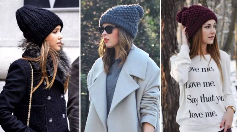 - объемные – связанные из толстой пряжи бини идеально вписываются в образы оверсайз;