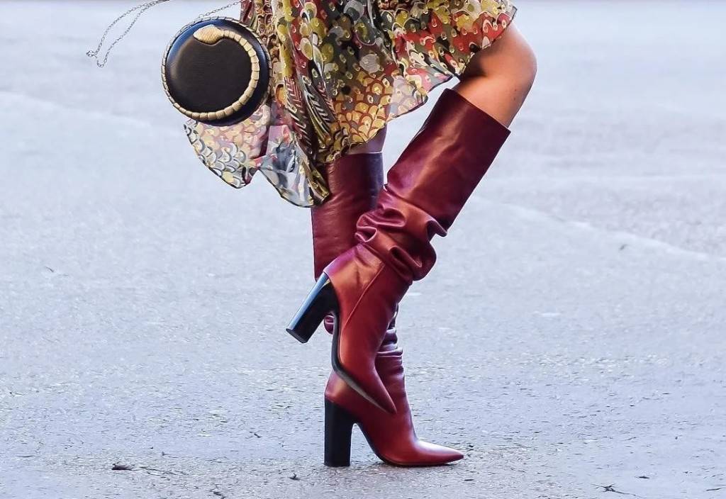 С чем носить красные и бордовые замшевые сапоги: фото классических сочетаний
