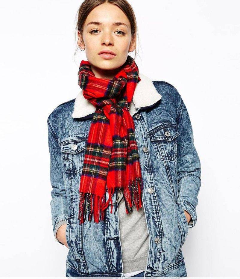 Не выходит из моды крупная и мелкая клетка в различных цветовых сочетаниях. Такие аксессуары более гармонично вписываются в однотонные луки.