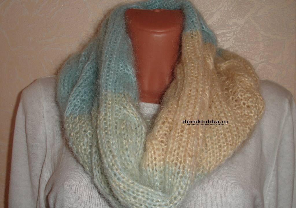 Связать шарф своими руками из мохера можно плотно и не прибегая к складыванию нескольких нитей. Это становится возможным благодаря особому узору. Состоит он в чередовании через определенное расстояние изнаночных и лицевых петель. Такая «резинка» может быть достаточно тугой (когда чередуется 1 или 2 петли) или воздушной, но при этом объемной.