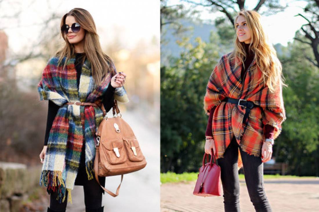 Однако надо помнить, что плед предназначен для тех, кто не боится объемных и пышных форм в наряде. Ведь индивидуальность подчеркивает всю красоту образа с использованием данной вещи.