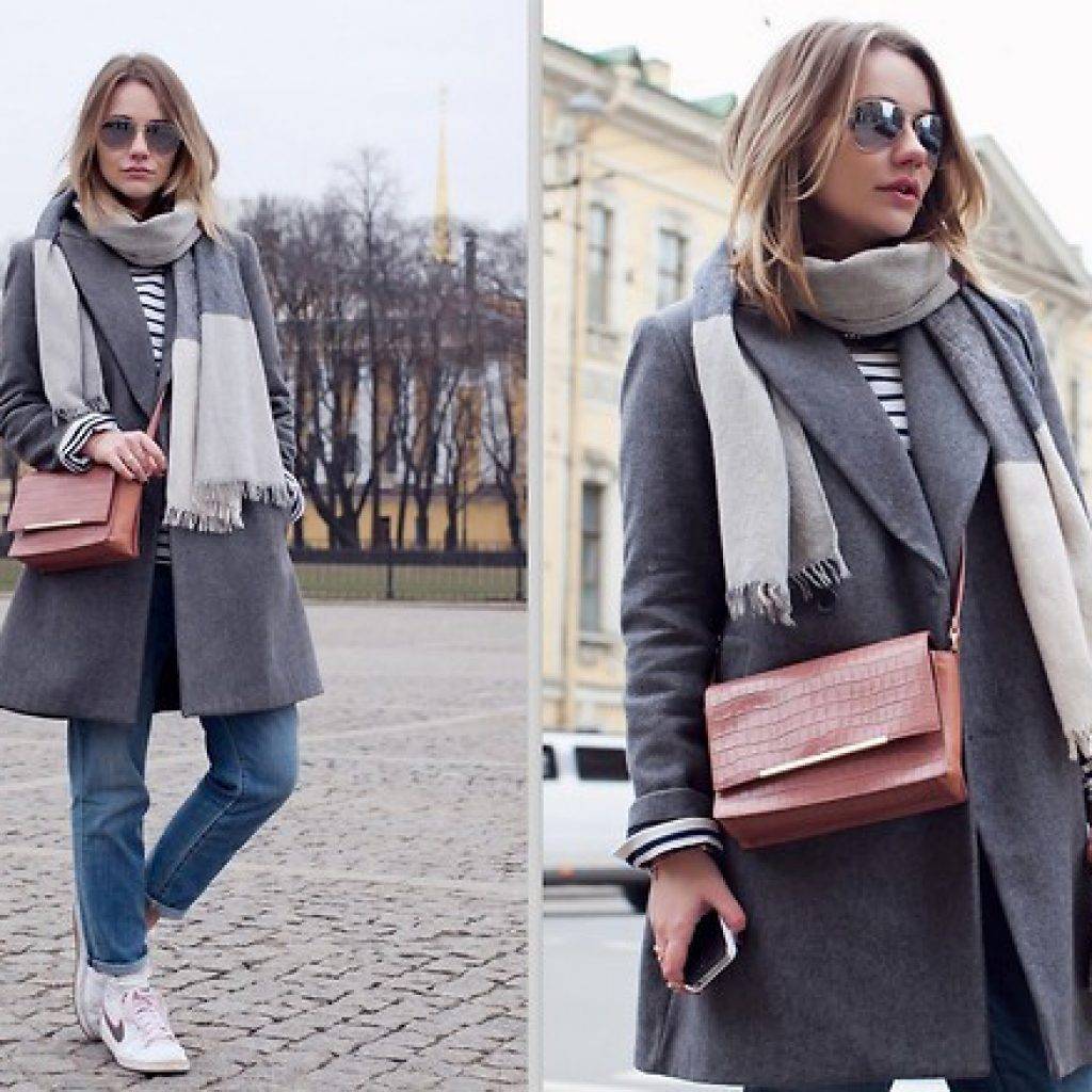 Создавая стильный образ, обязательно надо правильно подобрать шарф к серому пальто. При этом не забывать, что особенности верхней одежды тоже должны учитываться.
