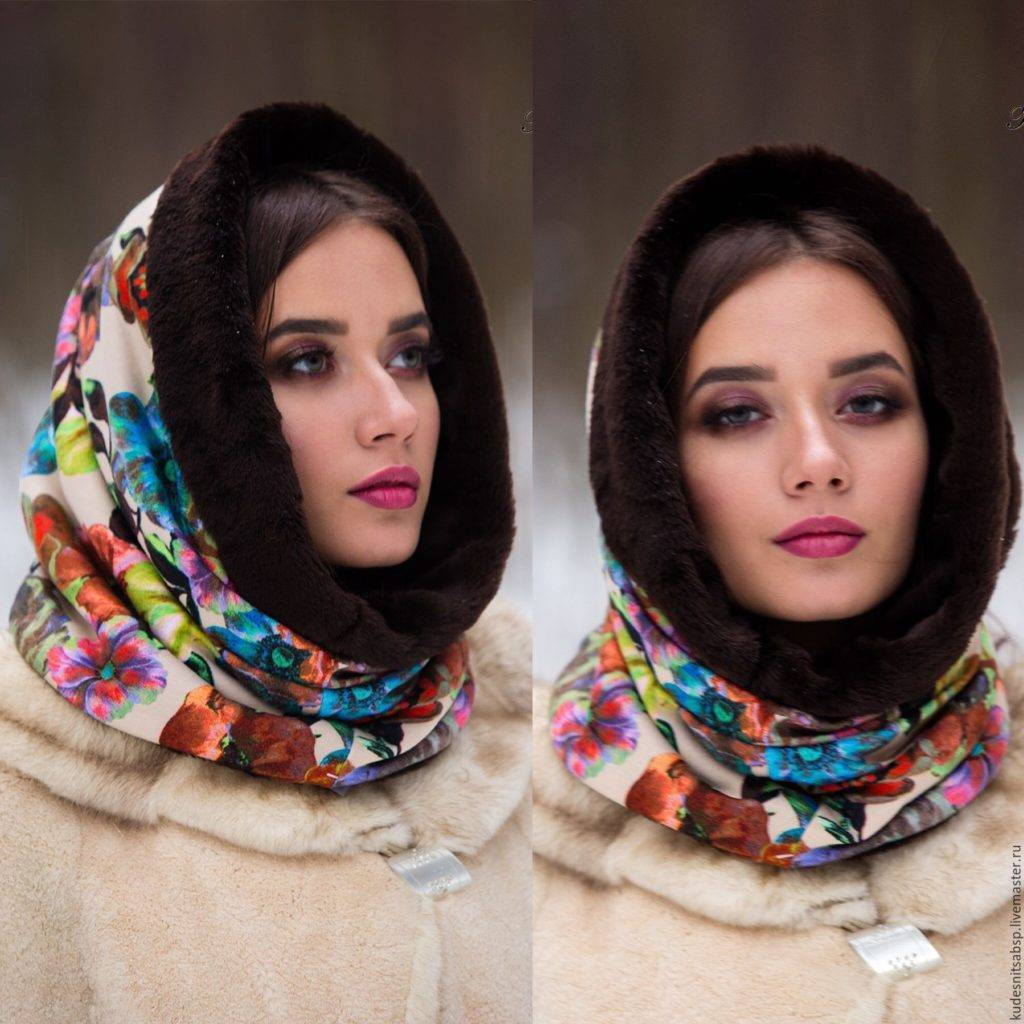 Шарфа вместо шапки можно носить с чем угодно: с шубой, пальто, футболками. Достаточно правильно сочетать все элементы гардероба и не создавать вычурных контрастов.