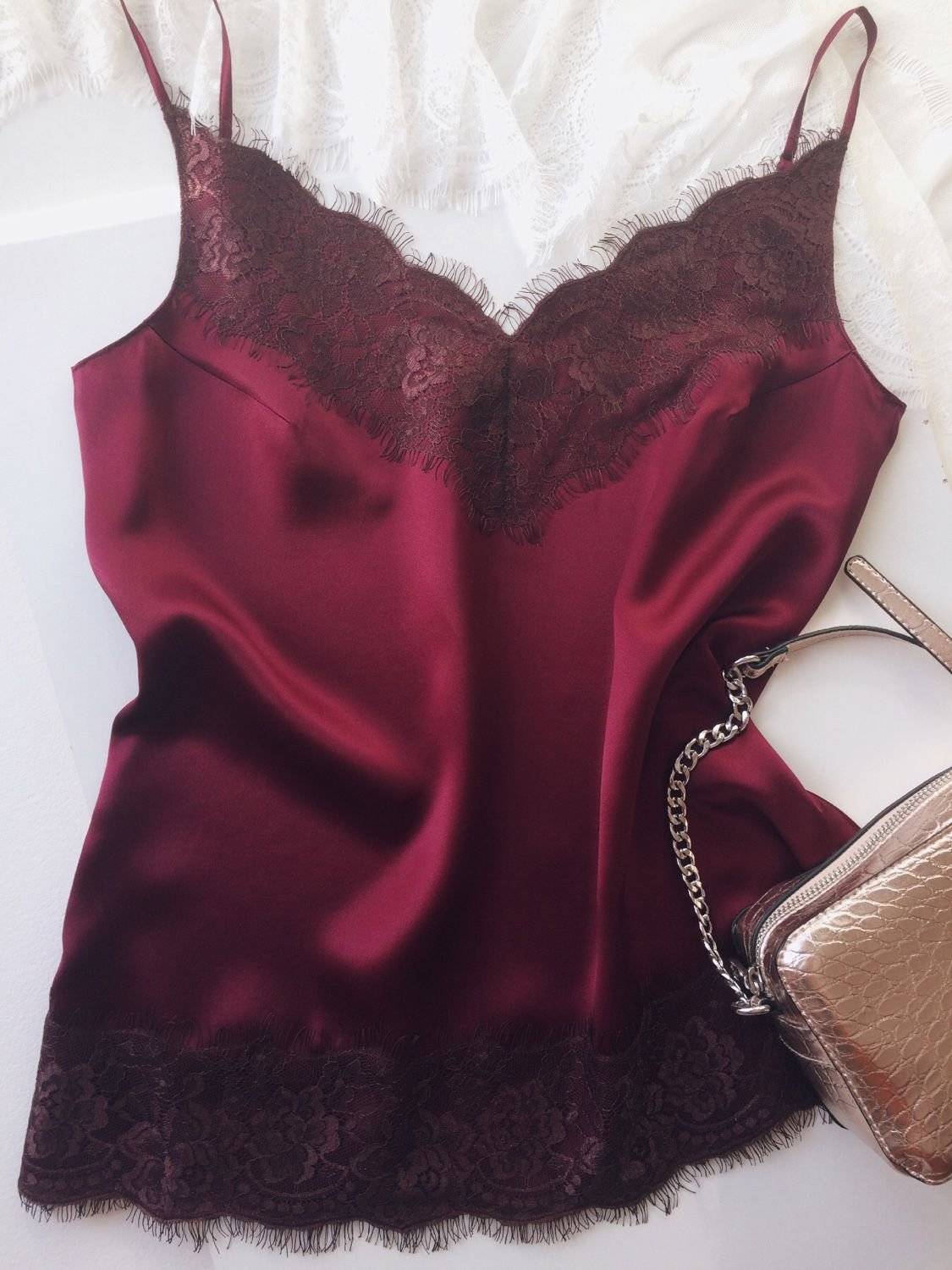 Самый популярный декор для топа в бельевом стиле — кружево. Такая отделка придает обладательнице женственности, привлекательности и хрупкости. Кроме того, используются гипюровые вставки для изделий. Благодаря декору модели в бельевом стиле находятся на грани между соблазнительностью и вульгарностью. Как правило, на подобной одежде минимум декоративных элементов.
