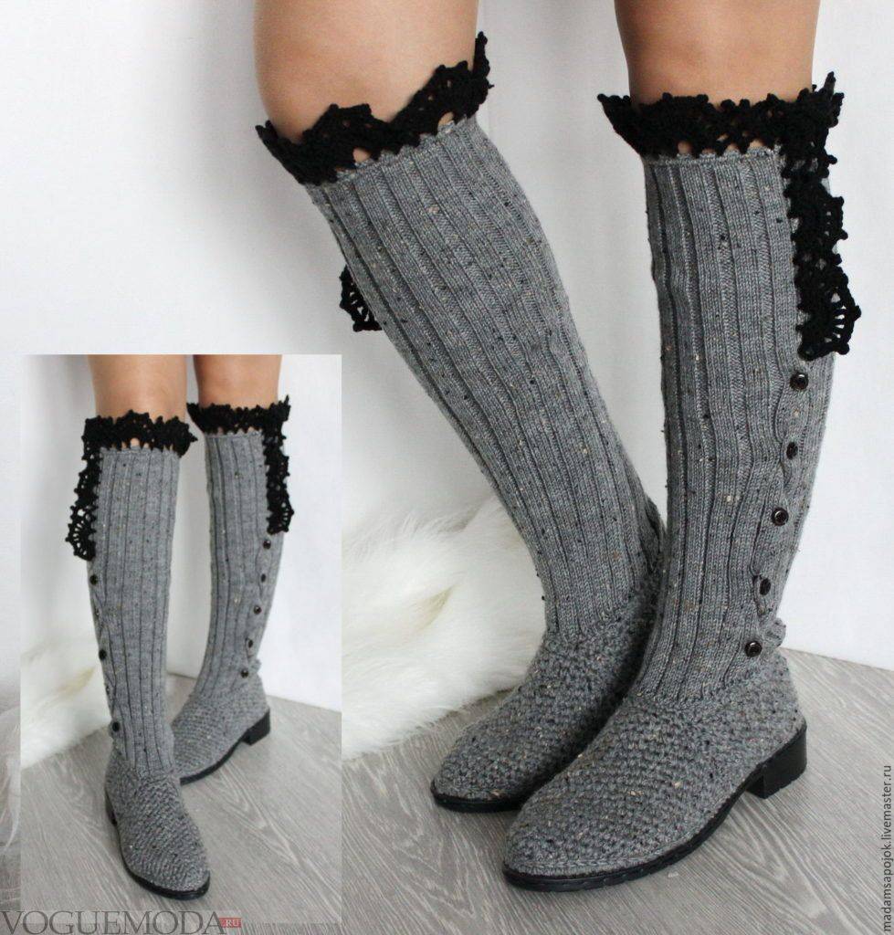 Классика жанра – это серые сапоги в сочетании с колготами телесного цвета. Такой вариант действительно хорош для поездок в офис, деловых встреч или для создания образа в романтическом стиле. Но суровые климатические реалии в нашей стране вносят свои коррективы в модные тенденции. Потому плотные колготки в сочетании с высокими сапогами – идеальный вариант для модниц в холодное время года.