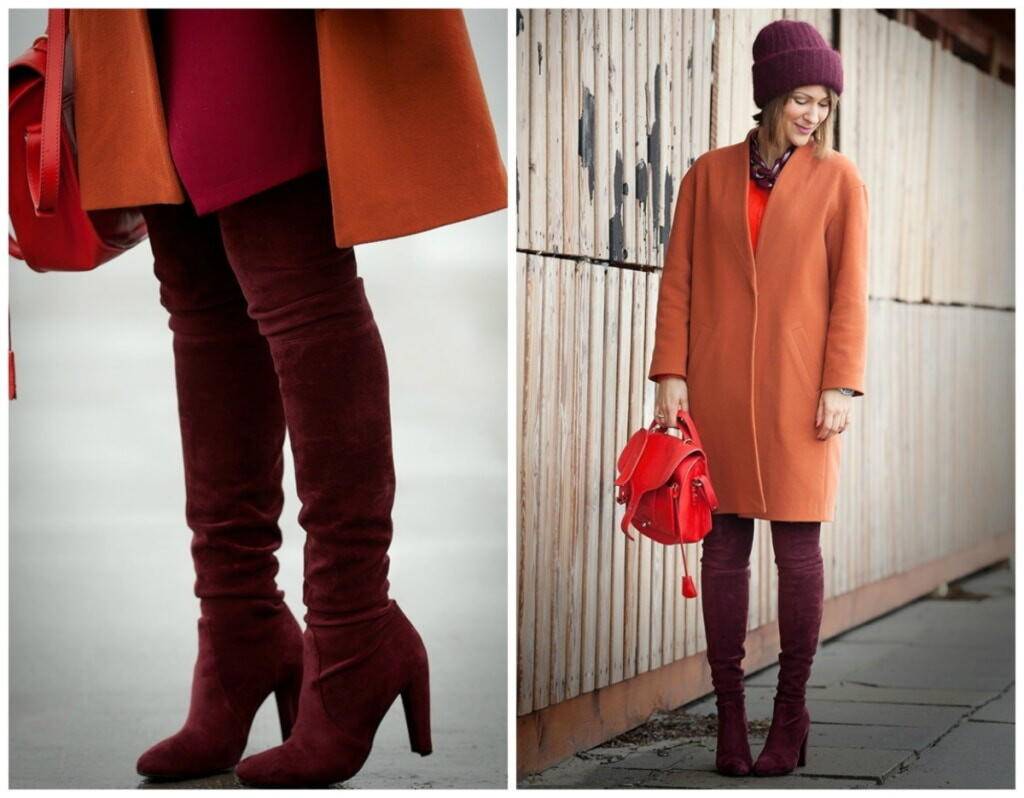С чем носить красные и бордовые замшевые сапоги: фото классических сочетаний