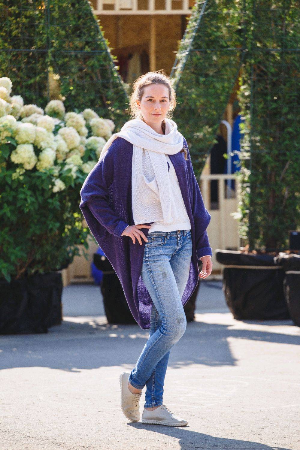 - Кашемир — привлекательный, мягкий материал. Требует деликатного ухода, легко деформируется. Изделие выглядит эффектно, нарядно. Кашемировый кардиган и джинсы — образ на каждый день, а сочетание описываемой модели и короткого платья — вариант для торжественных мероприятий.
