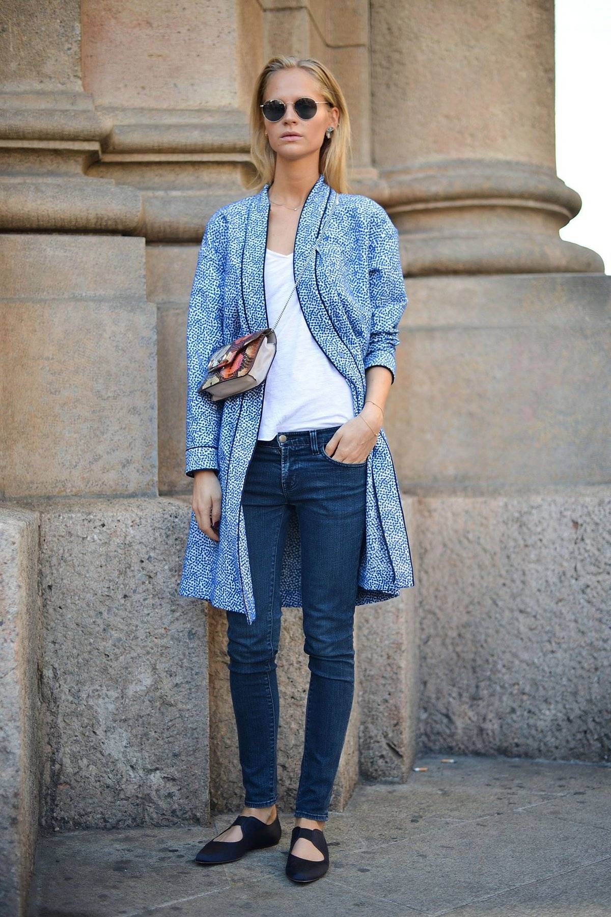 Категорически не стоит сочетать удлиненные модели прямого и простого кроя с платьями, широкими, сложных фасонов брюками и длинными юбками «макси». Буквальное сочетание нескольких длинных и объемных вещей не только вне трендов – оно откровенно добавляет возраста и простоты в имидж.