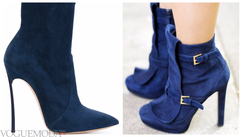 Синий цвет сейчас на пике популярности, поэтому в вашем гардеробе наверняка присутствует не одна вещь этого оттенка. Особый акцент в этом году дизайнеры делают на синюю обувь.