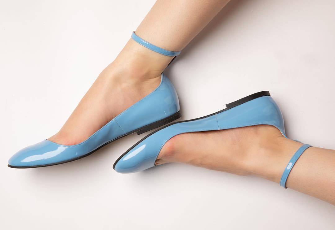 Такие синие лодочки на плоской подошве способны вписаться во многие стили, в том числе и кажуал. Их можно комплектовать с классическими или потертыми и «дырчатыми» джинсами. Чтобы не стать полностью синей, верх лучше выбрать светлым. Учтите, что предмет из лаковой кожи в гардеробе должен быть только один. Ни в коем случае не сочетайте лаковые туфли с верхом из глянца – иначе вы станете похожи на огромный и блестящий леденец.