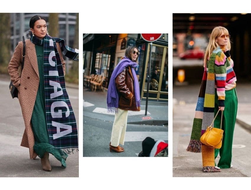 В создании образа вам смогут помочь очумелые ручки подруги, которая умеет вязать, или бабушки – hand made шарфы тренд сезона осень-зима 21/22.