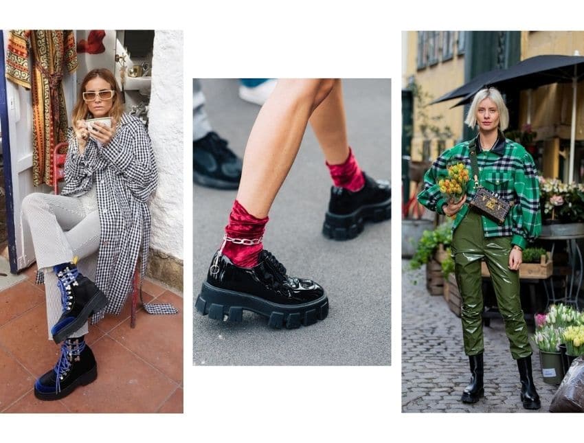 Еще один тренд скандинавской моды – обувь на грубой подошве. Ледяной ветер, дождь и снег – необходимо утепляться и не промокать. Массивные ботинки – решение и для наших погодных условий. Можно сделать акцент на эксцентричную пару или остановиться на классических оттенках черного и белого.