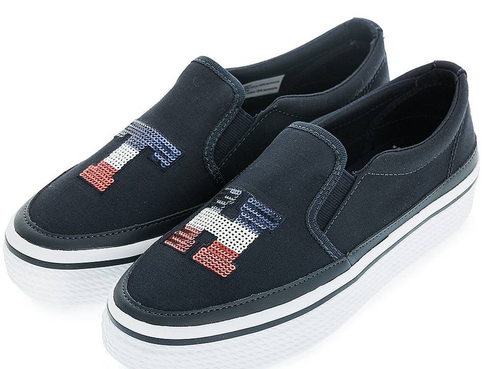 - Tommy Hilfiger. Выпускает качественные слипоны из кожи и замши, преимущественно черного, темно синего, бордового и коричневого цветов.