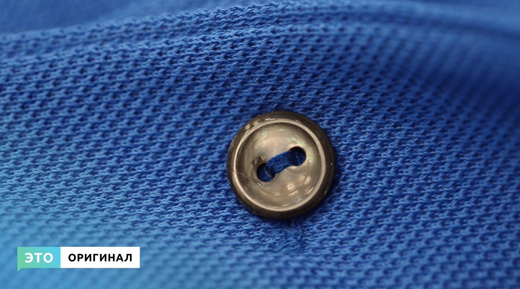 Форма пуговицы должна быть вогнутой, если форма плоская, то изделие — подделка. Также цвет, он зависит от цвета изделия. Если футболка светлая, то пуговицы будут белые, если темная то пуговицы будут в цвет изделия. Кроме того, независимо от цвета, все пуговицы будут иметь перламутр.